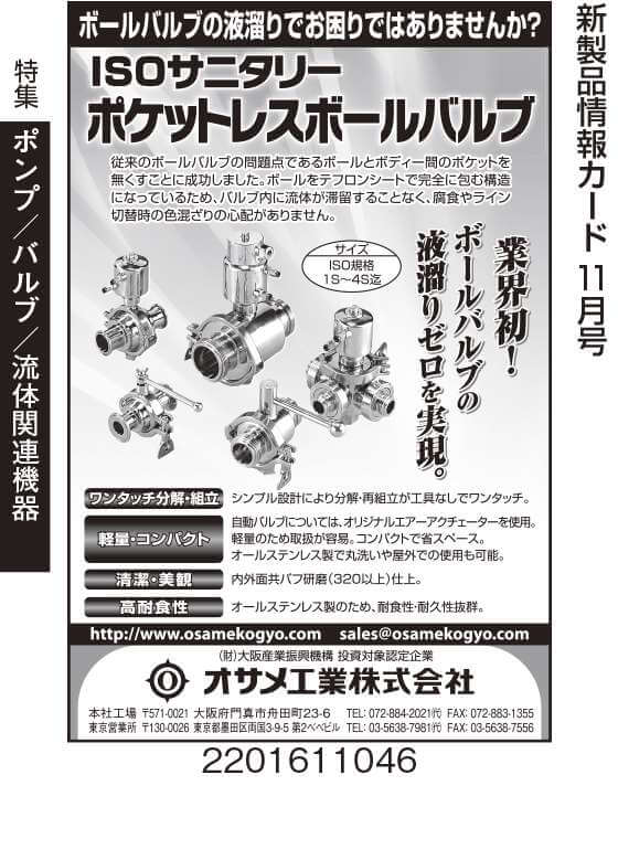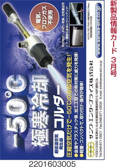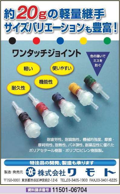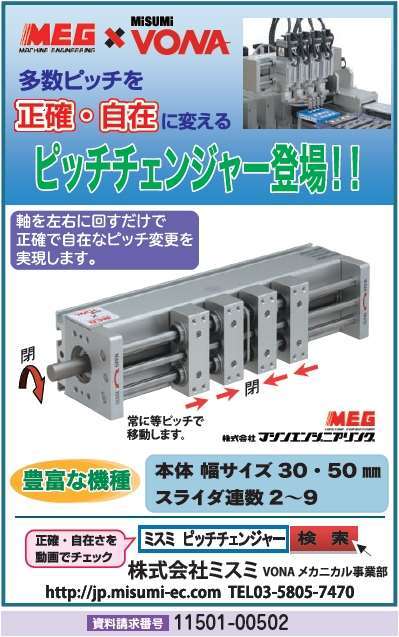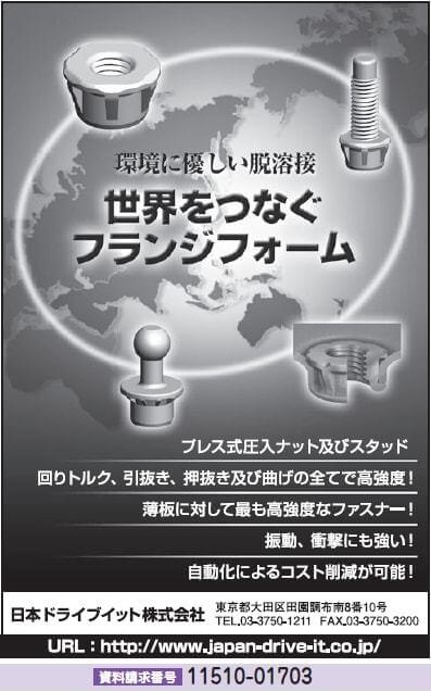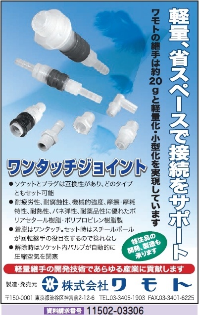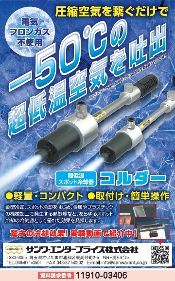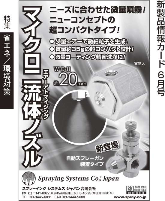 高精度センサ(Micro-Epsilon Japan株式会社)/包装用ホットメルトシステム(ノードソン株式会社)/ポータブルドライフォグ加湿ユニット(株式会社いけうち)/ナイロンワンタッチスペーサー(株式会社廣杉計器)/軟削材穴あけ加工技術(株式会社ユーベック)/水圧式高所作業台(サンマックス株式会社)