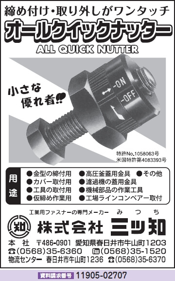 工業用炎検知装置(株式会社村上技研産業)/金属粉末射出成形法(株式会社キャステム)/キトーラウンドスリング(株式会社キトー)/次世代エアチャック(NKE株式会社)/レーザー距離センサ(株式会社村上技研産業)/工業用火検知装置(株式会社村上技研産業)