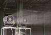 「CLJ-Dome」は微細な霧(セミドライフォグ)を送風ファンで拡散し、霧の気化熱によって広範囲を冷房する省エネ冷房システム。微細な霧のため床や壁面、生産設備や製造物を濡らすことなく冷房できる。