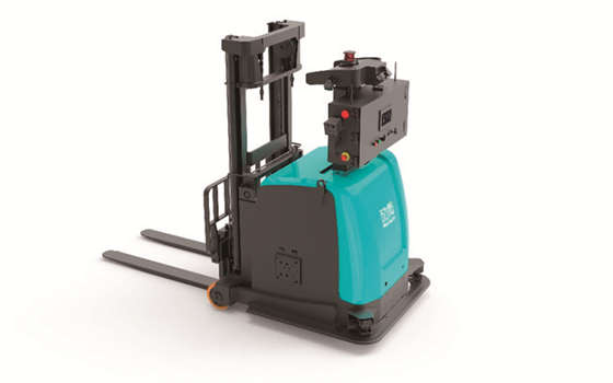 「マルチウェイロボティクスMW-SE15」は、AIによる画像認識とディープラーニングで、人や車両、貨物を識別し、複雑な状況でも安全走行を実現するカウンターバランス型自動フォークリフト。荷積み荷卸し、水平搬送など幅広く活躍。
