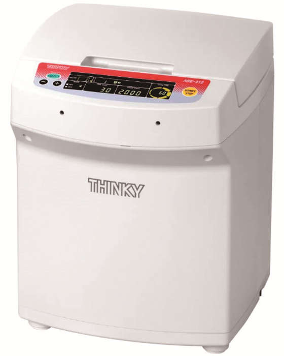 「あわとり練太郎ARE-312」は、従来機に比べ撹拌力・脱泡力が向上し、通信機能により遠隔操作やトレーサビリティにも対応した自転公転ミキサー。本体の温度上昇を抑制し、装置内の温度測定が可能。