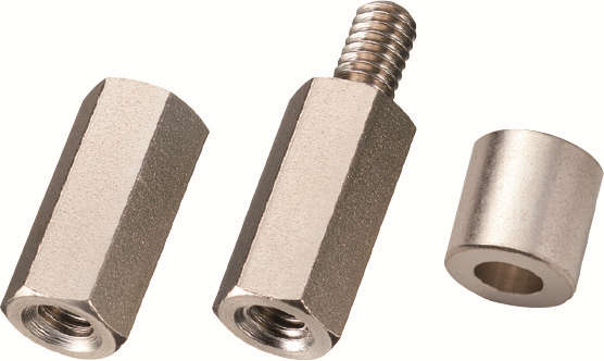 「スチールスペーサー」は、強度と安定性により機械部品の取り付けや調整に好適。「鉄」の高い機械的強度と耐久性を「無電解ニッケルめっき」と合わせることにより耐腐食性と耐摩耗性を向上。豊富なラインナップと短納期で効率的な生産活動をサポート。六角両メネジ、六角オネジメネジ、丸形中空タイプを用意。