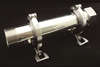 「クーラントフレッシュCF-100」は工作機械に使う水溶性切削液のベタつきと腐敗による臭気改善、延命による交換サイクルの延長を実現する。切削液が循環する配管経路に取り付けて使用。動力源は不要でメンテナンスも容易。